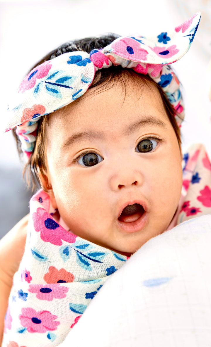 Wrap your little one in soft, breathable comfort with our ‘Floral Garden’ - muslin wrap and headband set!, Made from lightweight muslin, it's perfect for gentle cuddles, cozy naps, and peaceful nights. Featuring charming prints and a snug feel, this swaddle is designed to keep your baby comfortable and secure—anytime, anywhere.