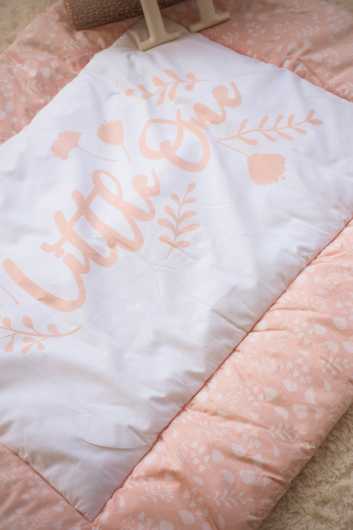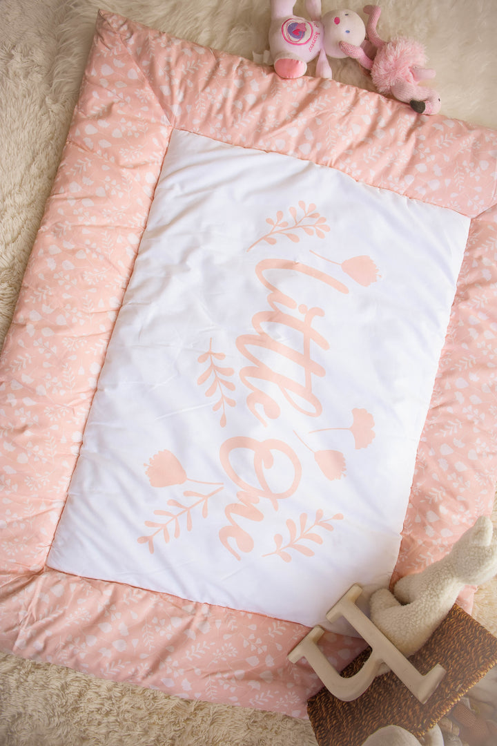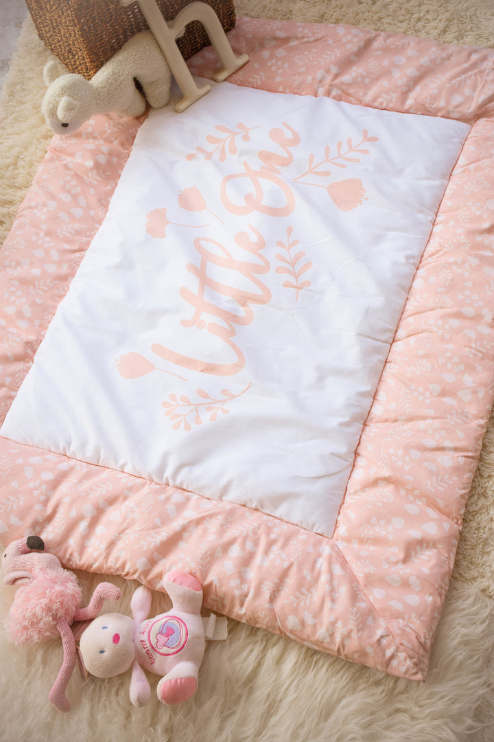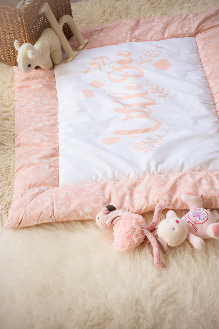 Iris playmat in Soft peach-pink tones with delicate floral patterns, perfect for baby girls.
