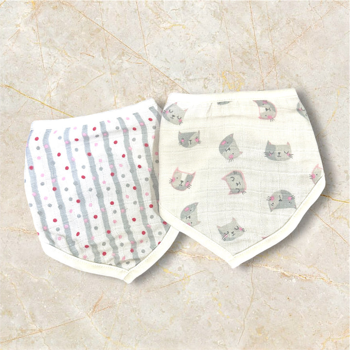 Our two-layer Kitty Cat bandana bibs offer stylish protection for drooling and teething babies. Made with 100% cotton muslin. Snap adjustable for a comfortable fit. Ideal to wear throughout the day to protect skin and clothing against drool wetness.