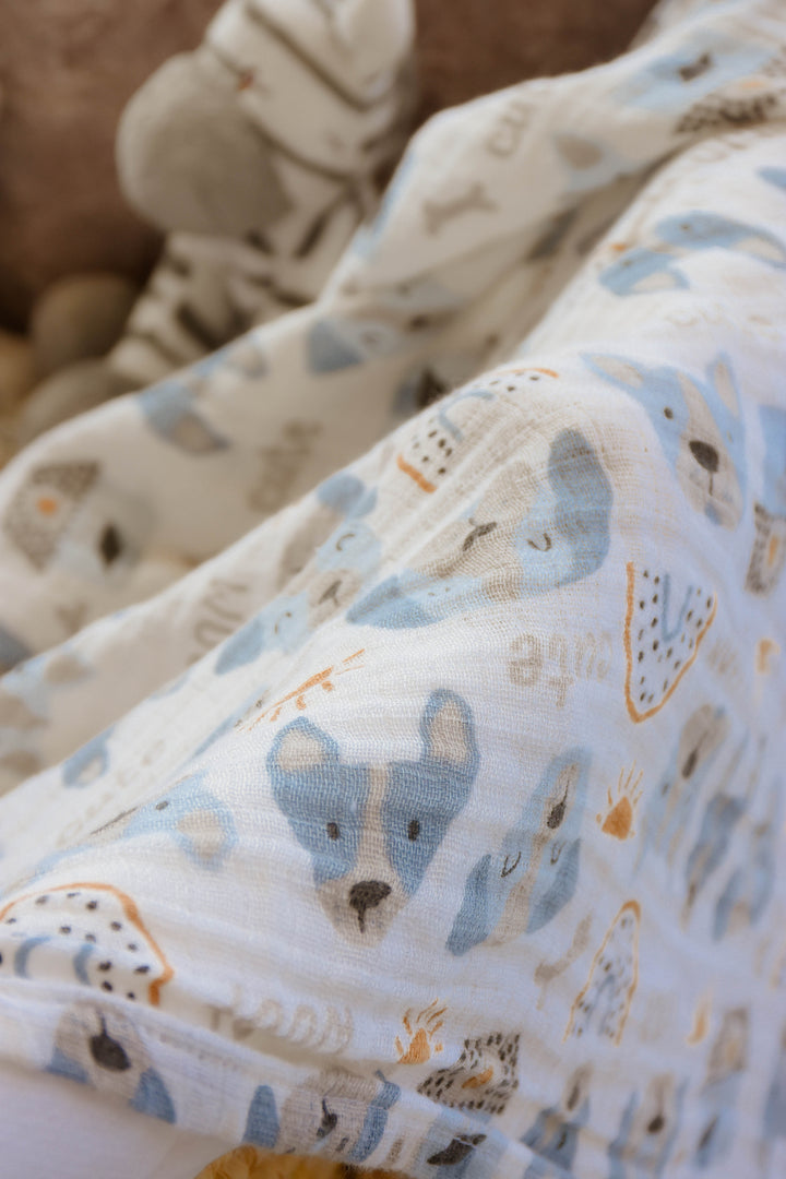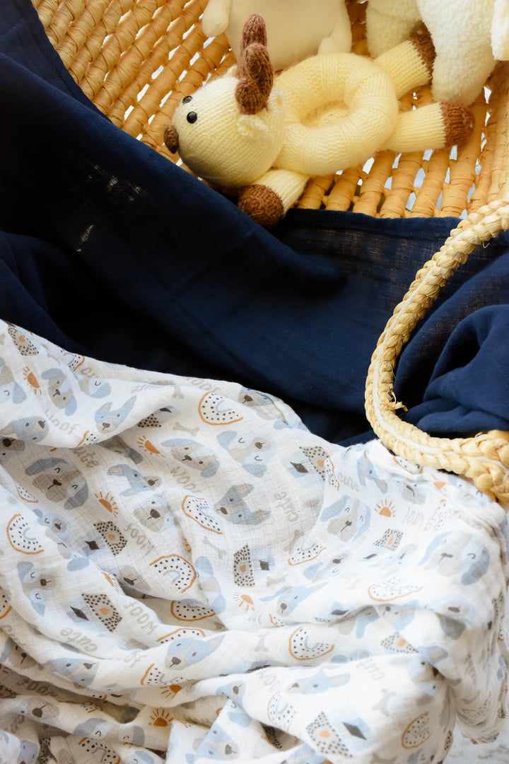 Wrap your little one in soft, breathable comfort with our Woof-Woof Midnight swaddle, Made from lightweight muslin, it's perfect for gentle cuddles, cozy naps, and peaceful nights. Featuring charming prints and a snug feel, this swaddle is designed to keep your baby comfortable and secure—anytime, anywhere.